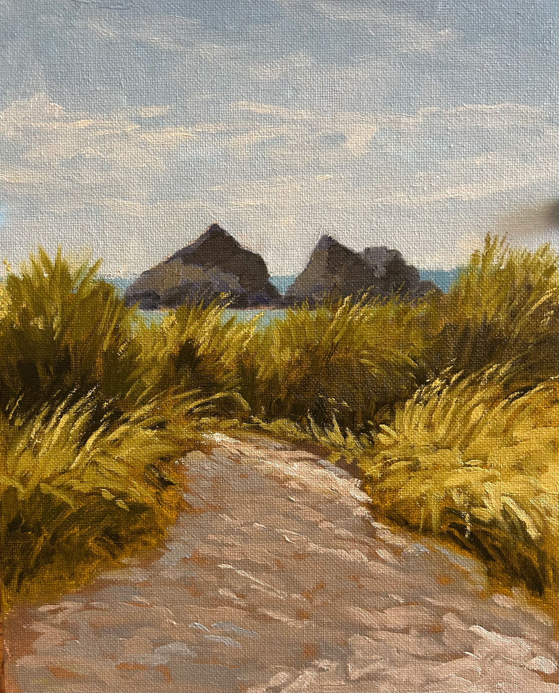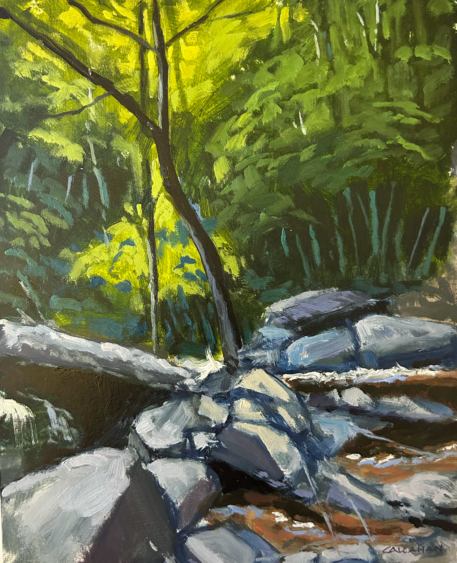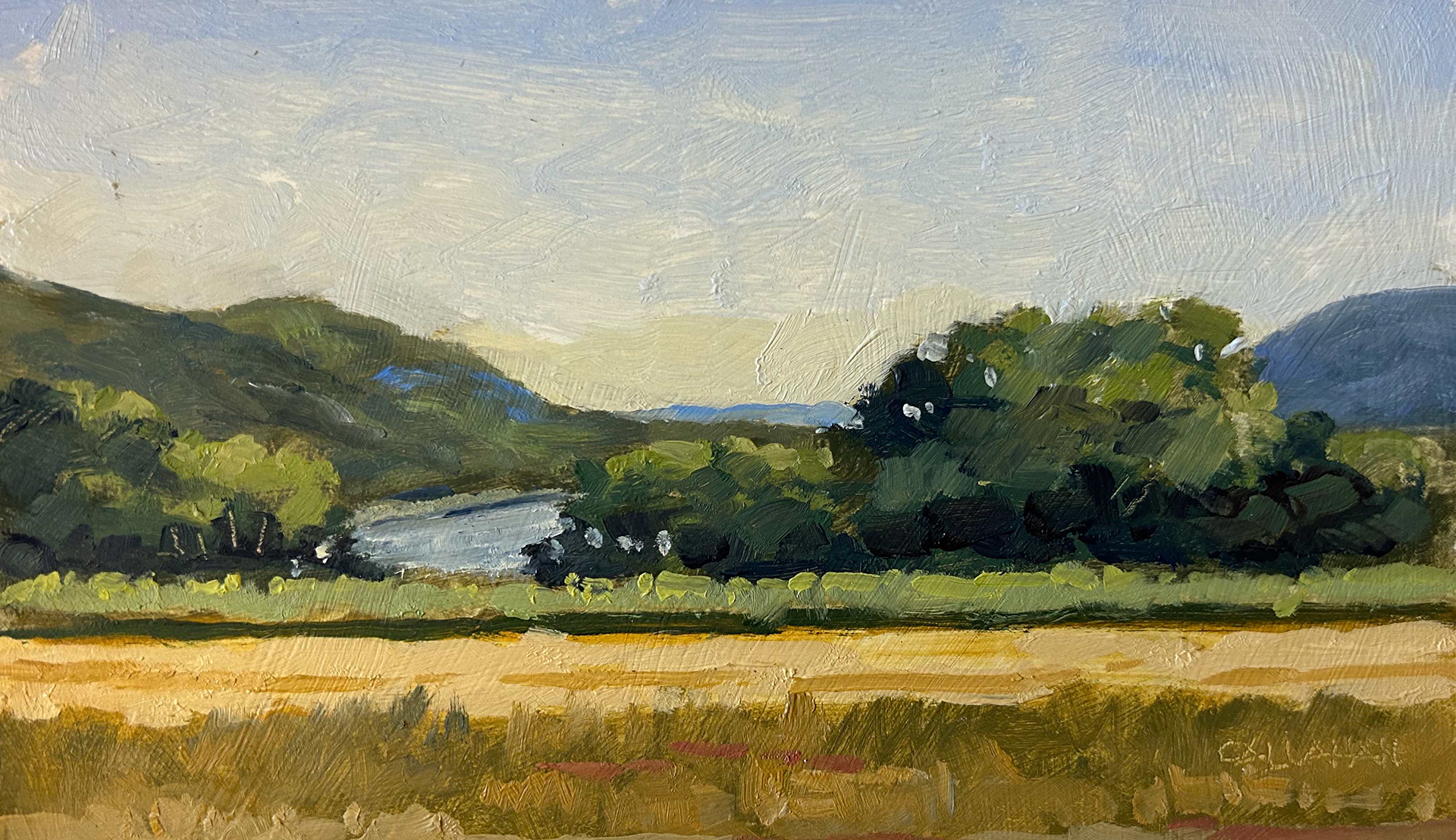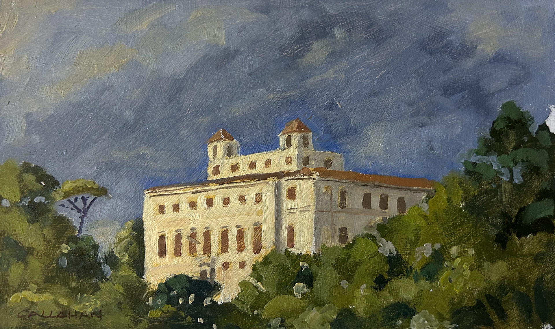 On Saturday afternoon October 19, 2024 while painting plein air with a friend, I stumbled and ruptured my Anterior Tibialis Tendon. The surgery to replace the tendon was followed by six weeks in a non-weight bearing cast. Since all I could really do was sit around the house, I focused my energies on painting. I arranged my studio to be able to paint while in a recliner with a small pochade box. I worked from photos I had taken over the past few years. These images came from our trips to Italy, Cornwall, Cape Cod, the Republic of Georgia, New Hampshire hikes, etc. I aimed for one painting a day, which I "pretty much" achieved. The paintings are quick. In some cases they are more studies than finished works. They range in size from 5x8 to 8x10 (sizes that can fit my paint box). I am grateful to my wife Toni who took wonderful care of me and to my good friend Andreas Leitner who was able to critique my work over the internet from his studio in Vienna Austria.